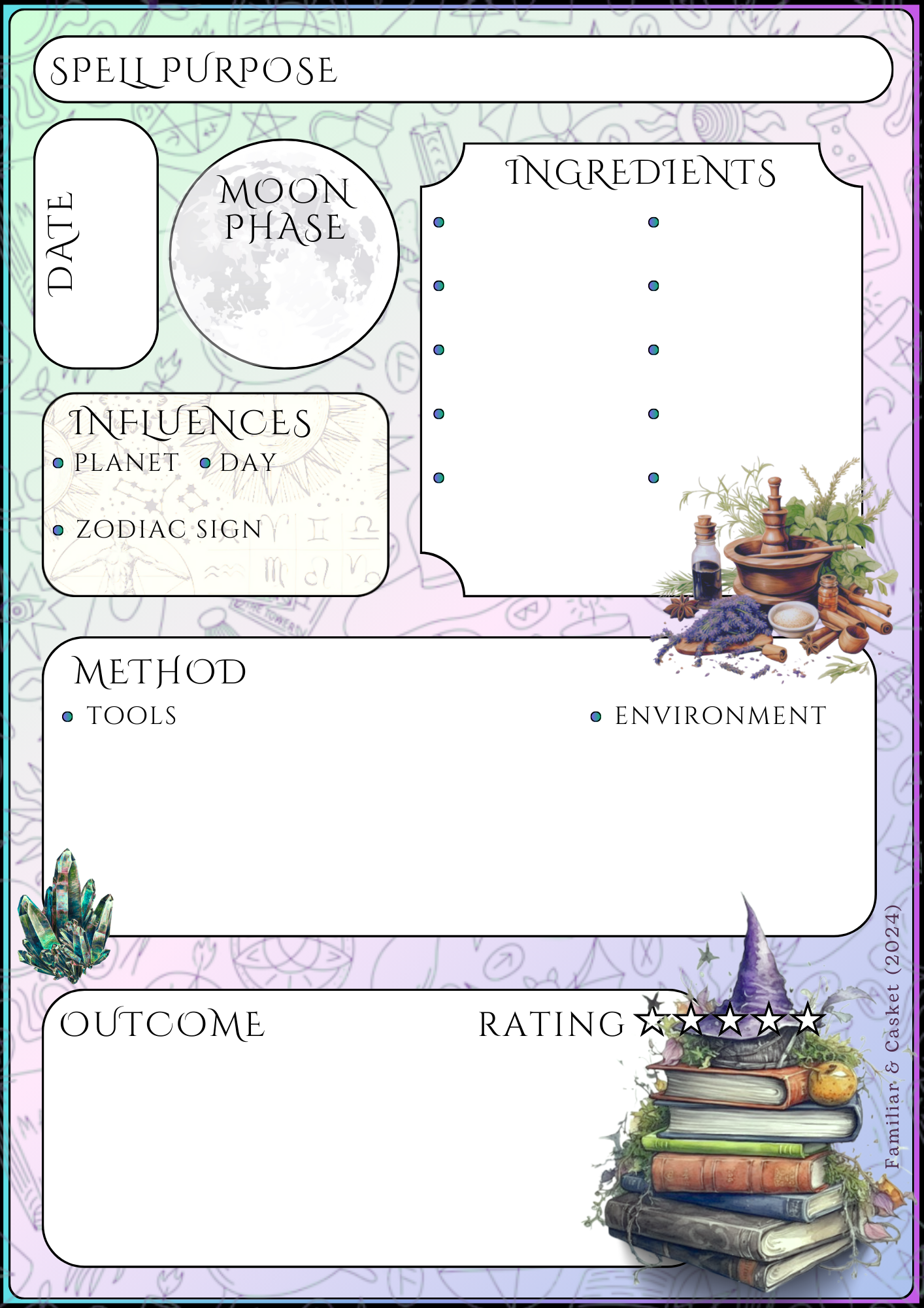 Hey there! We're so excited to announce some awesome news to you about our new free downloadable content! Familiar & Casket have been working hard to enhance your experience and make it more enjoyable, which is why we've created a special record page just for you. Whether you love casting spells, organising your favourite recipes, or writing down positive affirmations, this handy tool has you covered. And the best part? It's completely free to download! We understand the importance of having your tools easily accessible, so think of this as a thank you for your continued support. Go ahead, grab your free download, and get ready to add a sprinkle of magic to your daily routine!