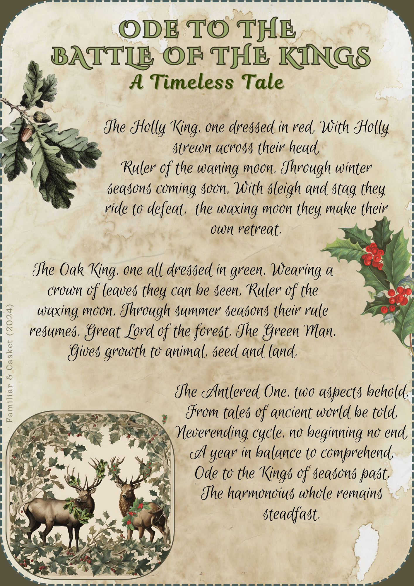Purchase your very own Holly King and Oak King from our Shop. Both Kings are supplied with Book of Shadows Ritual Pages and Ritual Items. Thank you for visiting Familiar & Casket.