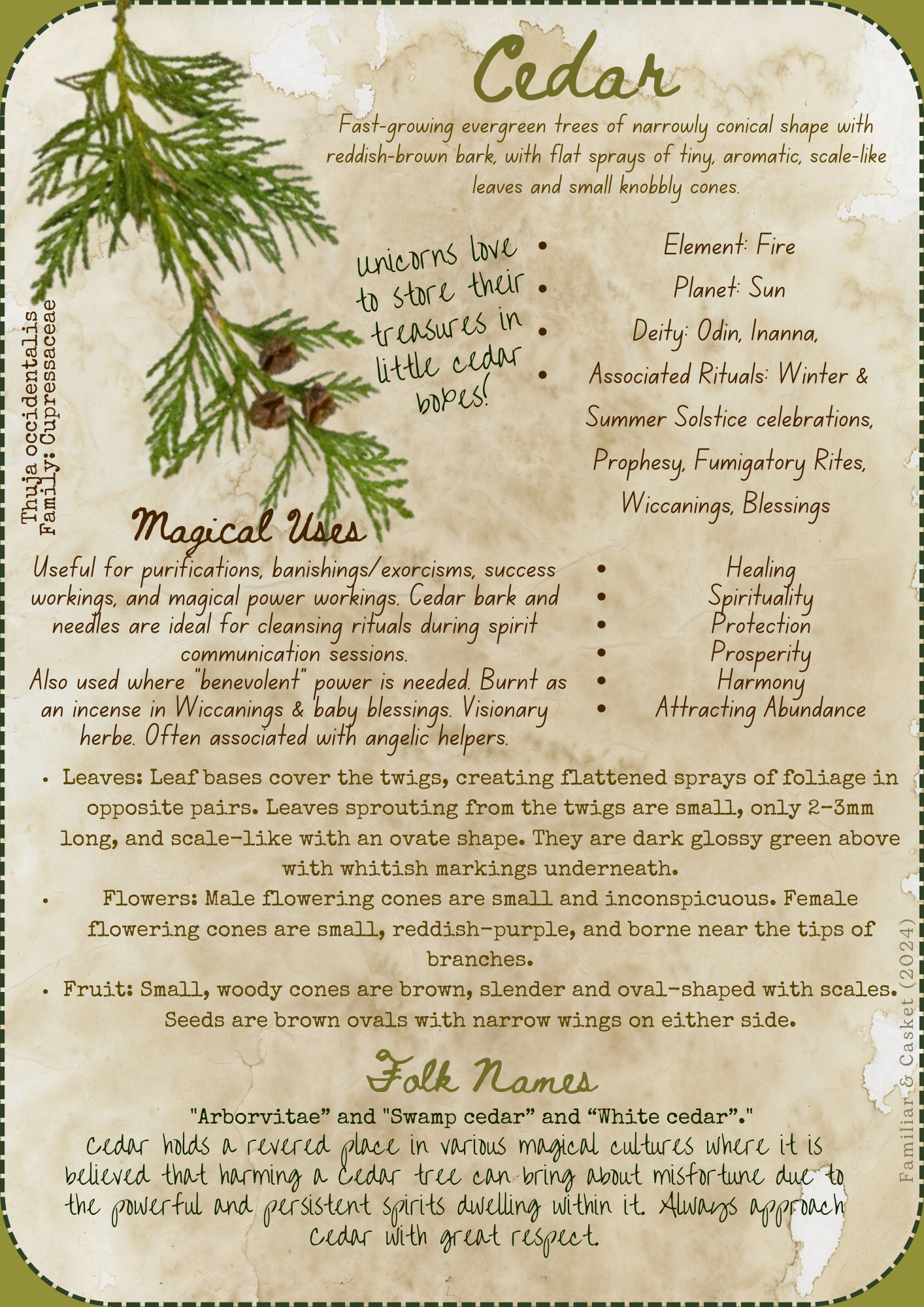 So there you have it - a brief overview of the magical properties of Cedar and how you can use it in your own practice. Have you ever worked with Cedar in your magical workings before? Share your experiences in the comments below! Thank you for visiting Familiar & Casket
