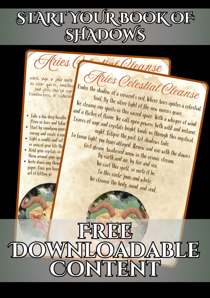 Unlock the transformative power of the cosmos with your FREE copy of the 'Aries Celestial Cleanse' Spell Pages, exclusively from Familiar & Casket. Perfect for those seeking to harness the dynamic energy of Aries, these spell pages are designed to invigorate your personal rituals and spiritual practices. Dive into a world of celestial magick, where you can rejuvenate your aura and cleanse your spirit with the fiery passion of Aries. Whether you're a seasoned practitioner or new to the mystical arts, these spell pages are crafted to guide you on a personal journey of renewal. Download now and let the magick begin, remembering that these enchanting pages are for personal use only.