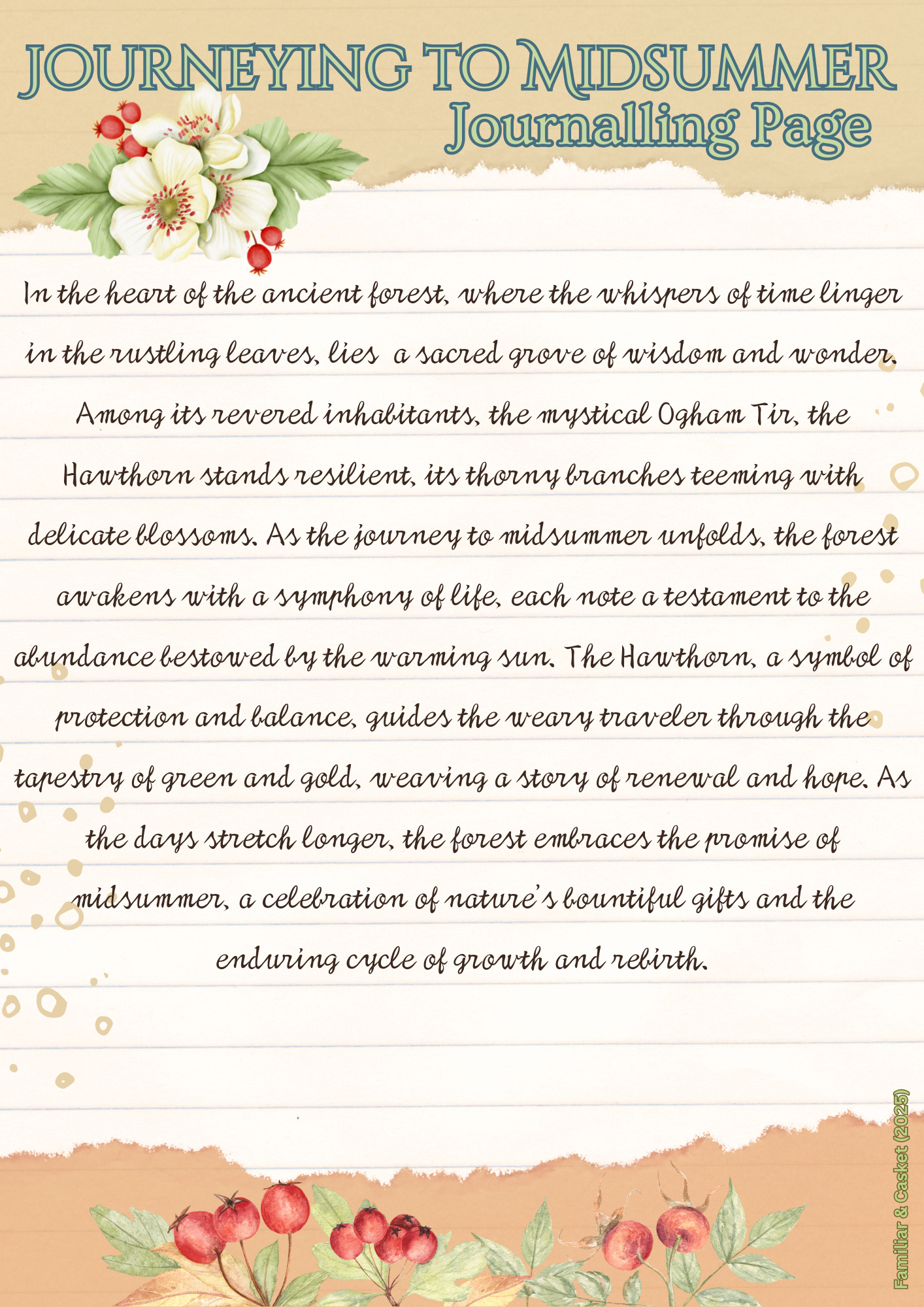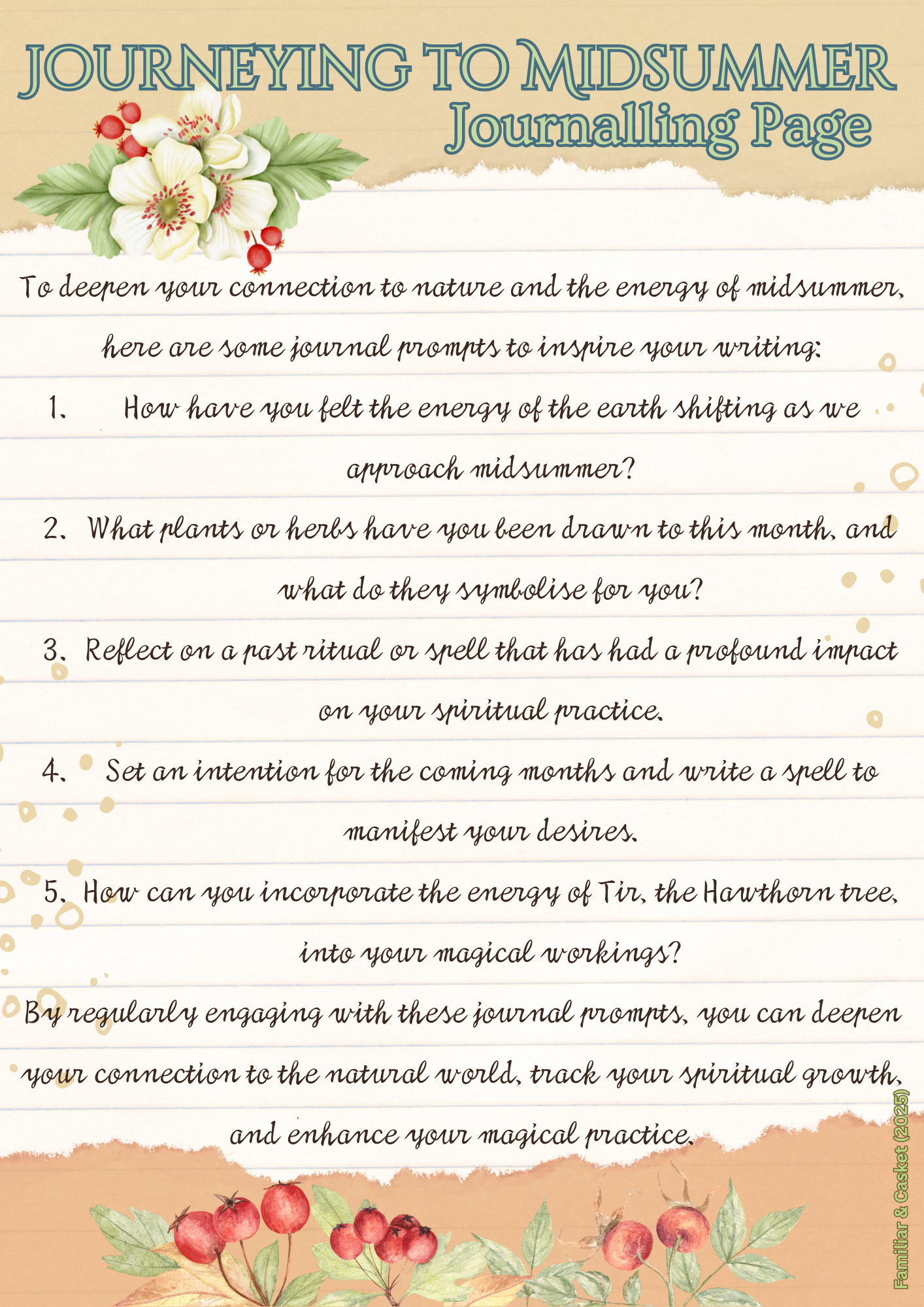 Unlock the magick of midsummer with a witch's journal, exploring druidry, plants of May, Ogham, Tir, and the mystical Hawthorn tree. Embrace the ancient wisdom of the earth.